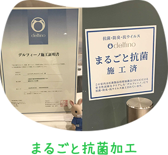 ゆったりとしたアポイントで密集を避け、換気・空気洗浄機、医院内のまるごと抗菌加工で感染予防対策を行っています。