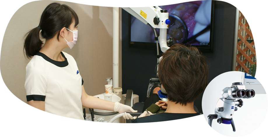 マイクロスコープは、通常肉眼で搬見る事ができない歯の細かい凹凸や、隠れた歯の根っこの汚れなどが分かり、より精密な治療を行うことができます。